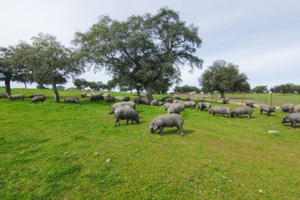 Silvo-pastoral agroforestry is where there is pasture land for livestock among random plantations of trees and the classic example of this is the dehesa in south-west Spain and Portugal, where several species of oak (and often other trees) are grown on otherwise ‘unsuitable’ agricultural land and animals are grazed beneath, giving the double benefit of the trees (e.g. cork, acorns, timber, fodder, shade etc) and the livestock (meat and meat products, wool, leather etc). Famously, the Iberian Black Pig (see photo), known for the quality of its meat, is often seen in the dehesa.