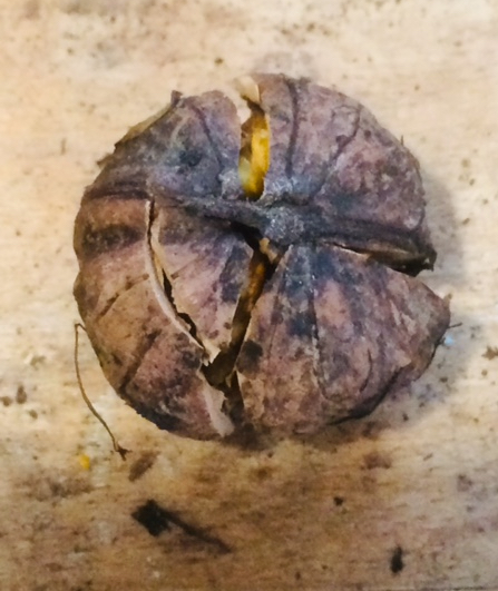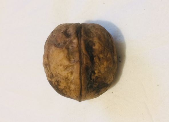 All this about food gathering is highlighted by the season of course, and I have been busy too. Do you have trouble cracking walnuts? All you need is a good hammer and the right position. Hold the nut upright, pointed end down, flat end to the top; one sharp tap with the hammer and voilà!