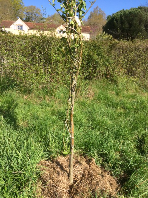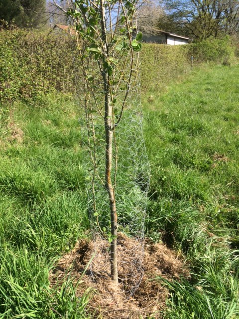 Just a word about tree protection; there are all kinds of bands to wrap round tree trunks on the market, but these should be avoided, especially the plastic ones! A tree’s bark needs to breathe, or more correctly, photosynthesise, just as much as its leaves. The bands may make life easier for the gardener, but not for the tree! Much better to use some kind of netting, such as the poultry wire in the photo above. There is a useful explanation in this Guardian article from 2002 (don’t worry, tree bark still does the same job, even 20 years later!).