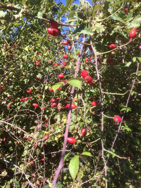 Harvesting continued into October, and rosehips were picked at the beginning of the month – almost too late, as I hadn’t realised that many were getting overripe. However, there were enough to make a couple of leathers (see photos), and, as with the autumn olive and the hawthorn berries, the taste is very intriguing – nice, but unusual!