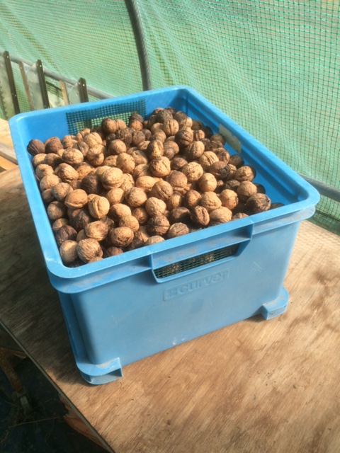 The walnut harvest and drying in the polytunnel were completed (some were still falling right to the end of the month) and there are over 10kg of nuts in their shells. I am more than happy with this, and have decided to shell them a jar at a time as I think they will keep better that way. I have also noticed this year that many more nuts shed their outer casing on the tree than in previous years, and then dropped to the ground, and there is far less internal insect damage to the nuts themselves. I hope this is a good sign for the health of the tree, which I have been nurturing since coming here.