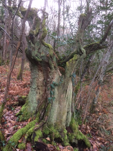 I love the quality of the old chestnut stump (right) and the amazing holes in the tree on the left – I think they’re too big and perfect for a woodpecker, and may have been done by the local hunting fraternity to attract some kind of nesting. I don’t know; any ideas, anyone?