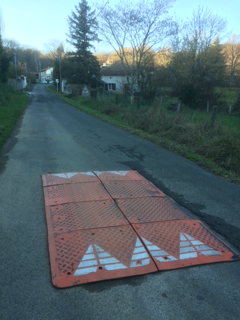 And while out walking, I took this shot (below) of what I call ‘Checkpoint Charlie’ just below my property; the Project site and buildings are out of sight, but the bottom corner of my land is where the end-of-speed-limit sign and the lamp-post are in the photo. I gave the speed hump this nickname because it is on the Greenwich Meridian, in other words where you pass from East to West!