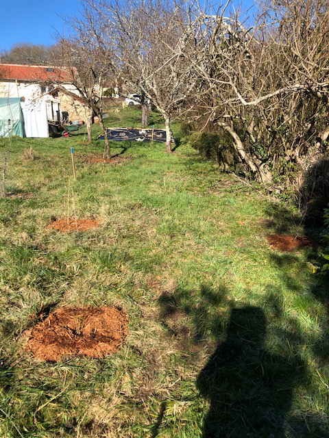 One of the plant nurseries I use has put together a series of hedging ‘kits’ specifically for permaculture and forest gardens – an anti-pollution hedge, a bee hedge, a thousand-and-one-flowers hedge, and so on. I have ordered one called ‘haie défensive odorante’, 20 plants full of thorns to discourage the deer! (but which also smell nice and provide nitrogen and lots of small fruit), to go in the boundary gap in the left background of the biomass hedge photo above. The plants included in the kit are sea buckthorn (Hippophae rhamnoides), medlar (Mespilus germanica), thorny lemon (Poncirus trifoliata), beach or Japanese rose (Rosa rugosa), barberry (Berberis thunbergii), Tibetan bramble (Rubus thibetanicus), Russian olive (Eleagnus angustifolia), Japanese quince (Chaenomeles japonica), hawthorn (Crataegus monogyna), blackthorn (Prunus spinosa) and gooseberry (Ribes uva-crispa).
