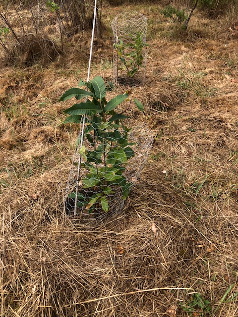 It means that the immediate focus needs to be on water management, to develop further from the swale ditches already installed in order to help the trees, shrubs and other plants to survive. This will now take priority over further planting (although there will be some, see below) until I can see the way forward to resume. My thinking is that unless I can give Nature a helping hand to improve the conditions for survival, the Forest Garden will always struggle, given the initial poor soil and the slope on this site. I was even watering this month, September, which has never been needed before.