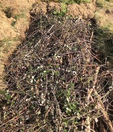 Obviously, this has been a huge step forward, but other work has been going on as well. I have done a fair amount of strimming and cutting back of wild plants such as dog rose and bramble. The bramble and hawthorn hedges in the Upper Garden have also been pruned back.