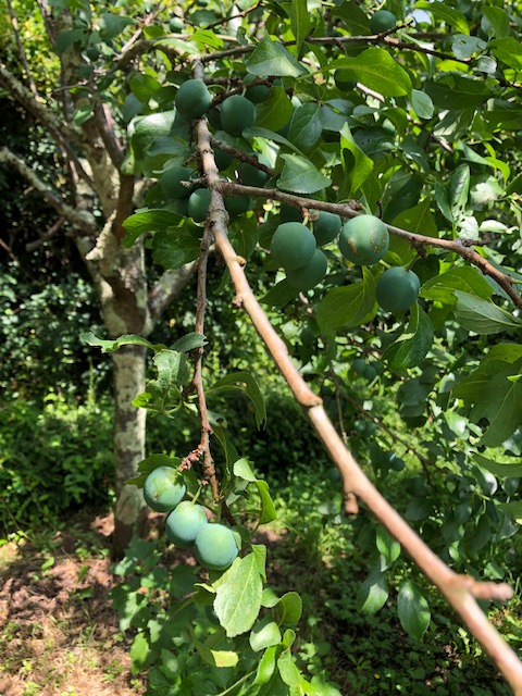 There is also fruit coming for later on – greengages, persimmon and mirabelles on older established trees, and a smattering of cherries, quince, apple, pear and peach on very young trees. There are one or two almonds and I think we should get a reasonable crop of walnuts this year from the older tree. It is disappointing that there have been no cherries to speak of from the mature trees, and it looks like there won’t be any figs either, I don’t really know why.