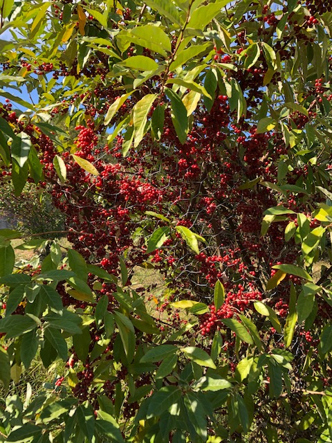 There was an enormous crop of autumn olives this year (see below), and I didn’t manage to find the time to process them all for fruit leathers. But others were no doubt happy about that!