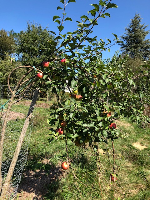 There have been continuing maintenance jobs over the summer – strimming, hedge trimming, cutting back bramble where it was beginning to take over, and some watering. There was much less need for watering this year, partly because we have had more or less sufficient rain, and partly because everything was another year older and so more resilient. The majority of the fruit trees have been planted on or near the swale ditches (see Blog, February 1, 2021 for an explanation of these), and the moisture-retention and mycelial development benefits from these is clear to see.