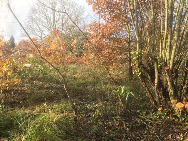 Where willow stems were removed, saplings of other trees are revealed leaning towards the light