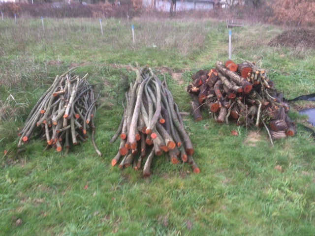 From left, stakes and small wood, poles, firewood